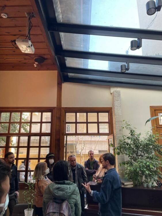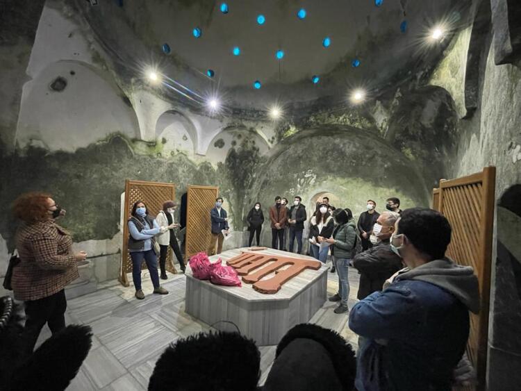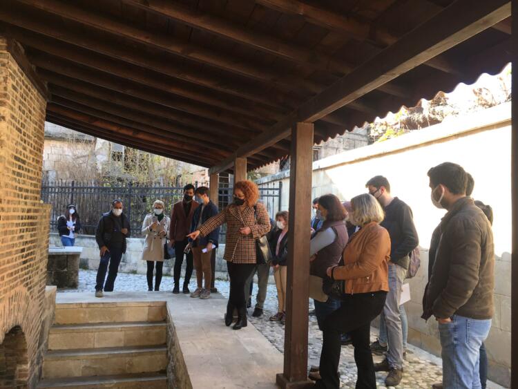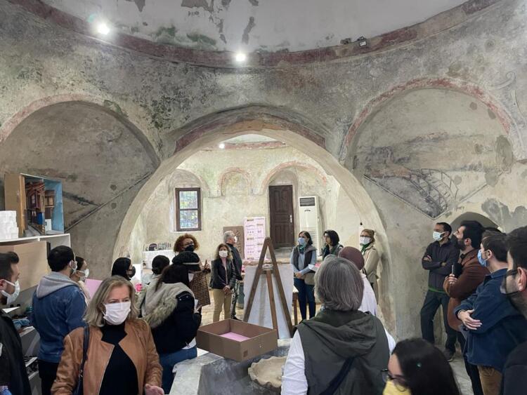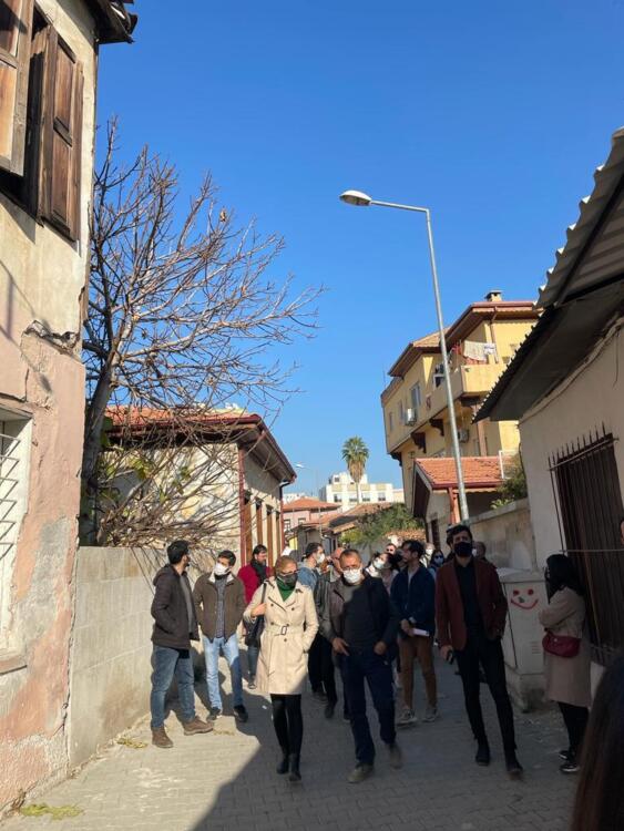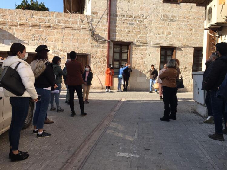 Mersin Üniversitesi Mimarlık Bölüm Başkanı Tuba AKAR mihmandarlığında Hadra Hamamı, tarihi sokaklar, Tahtalı Cami ve Restorasyonu tamamlanan Kiremithane Restoranı gezilerek tur tamamlandı. Gezi sırasında Akdeniz Belediyesi’nde görevli Mimar Hatice ATALAY ve Kiremithane Restoranı Projesinin Mimarı Seza OLCAYCAN gezide meslektaşlarımıza bilgiler verdiler.