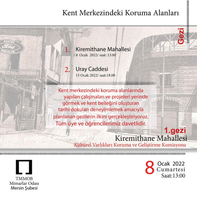 Kültürel Varlıkları Koruma ve Geliştirme Komisyonu / Kent Merkezindeki Koruma Alanları 1. Gezi Etkinliği “Kiremithane Mahallesi Gezisi” / 08.01.2022